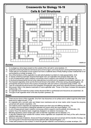 A Level Biology Crossword Pack On Cell Biology And Biochemistry Teaching Resources